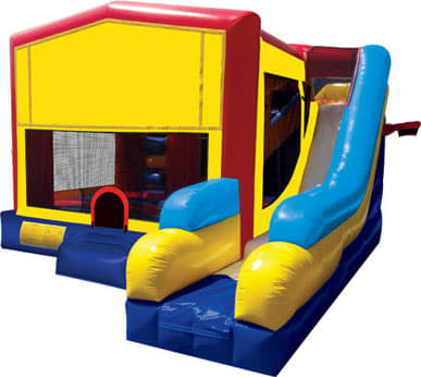With its spacious bounce area, slide, push throughs, and basketball net, the Super Hero Bouncer offers a variety of activities that will keep children entertained for hours. They can jump, slide, crawl, and shoot hoops, all in one inflatable play structure!